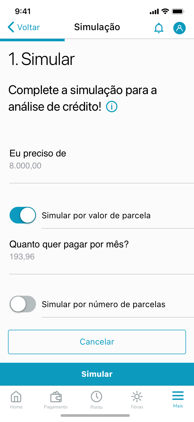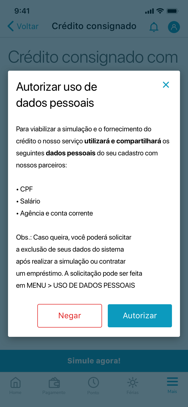 Permite a simulação e contratação do empréstimo consignado diretamente pelo colaborador da sua empresa.