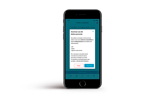 A função atende a LGPD ao solicitar autorização para uso dos dados pessoais necessários ao processo de crédito consignado.