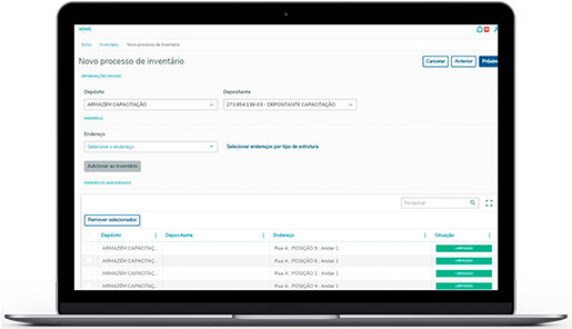 Configure endereços de armazenagem de acordo com o fluxo de processos e mapeamento do armazém, otimizando a ocupação de espaço com a fusão de estoques.